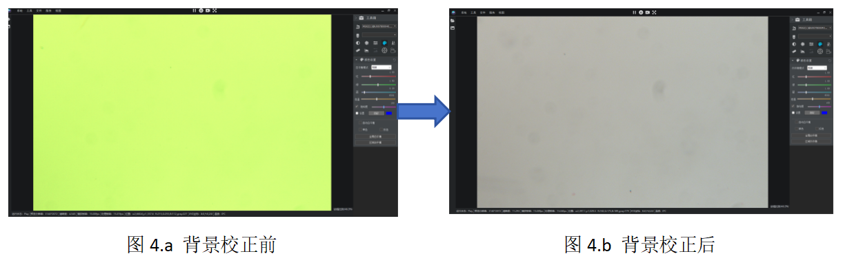 由于顯微鏡光源與相機(jī)默認(rèn)設(shè)置的差異,軟件成像背景可能出現(xiàn)偏色(如發(fā)黃、泛藍(lán)等),如圖1所示。此類問題屬于正?,F(xiàn)象,可通過軟件內(nèi)置工具快速校正。