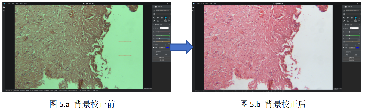 2. 點(diǎn)擊 “區(qū)域白平衡”,框選該區(qū)域完成校正(圖5)。
