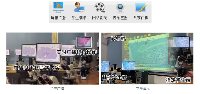 明美數碼顯微鏡互動教學系統(tǒng)可以通過“屏幕廣播”將教師端的示教的標本或其他教學內容同步實時地廣播給學生;或者可以通過“學生演示”功能將某個學生端的標本圖像廣播給其他學生;亦可以打開“共享白板”,讓教師與學生能夠在同一個白板上編輯操作,實現示教內容的高度統(tǒng)一,使學生能夠在有限的實驗時間內掌握大量的知識。