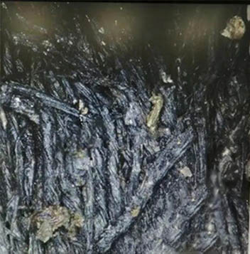 顯微鏡下,這處“泥土”果然清晰可見條縷狀,是紡織物無疑。發(fā)現(xiàn)絲綢,曙光在前。