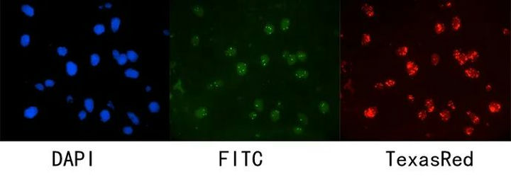 熒光原位雜交(Fluorescence In Situ Hybridization,F(xiàn)ISH)是臨床病理檢測中廣泛運用的一種分子細(xì)胞遺傳學(xué)診斷技術(shù),其原理是用熒光染料直接或間接標(biāo)記的DNA核酸探針與待測樣本中的DNA核酸序列按照堿基互補配對的原則進(jìn)行雜交,然后通過熒光顯微鏡觀察熒光信號位置、數(shù)量等來判斷待測序列的缺失、擴增及易位等情況。