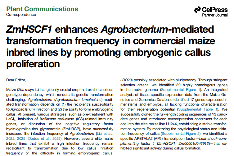 玉米,作為全球三大主糧之一,其遺傳轉(zhuǎn)化技術(shù)的發(fā)展始終關(guān)系著國家糧食安全的命脈。然而,一個(gè)長期存在的行業(yè)難題——嚴(yán)重的“基因型依賴性”,猶如一道天塹,阻礙了優(yōu)秀基因直接導(dǎo)入大多數(shù)商業(yè)玉米品種的步伐。
